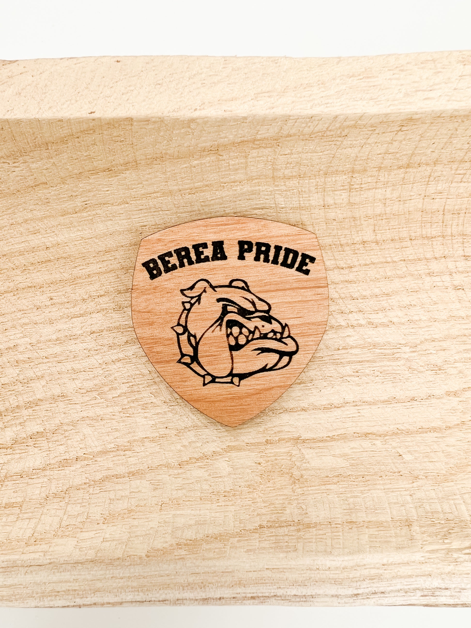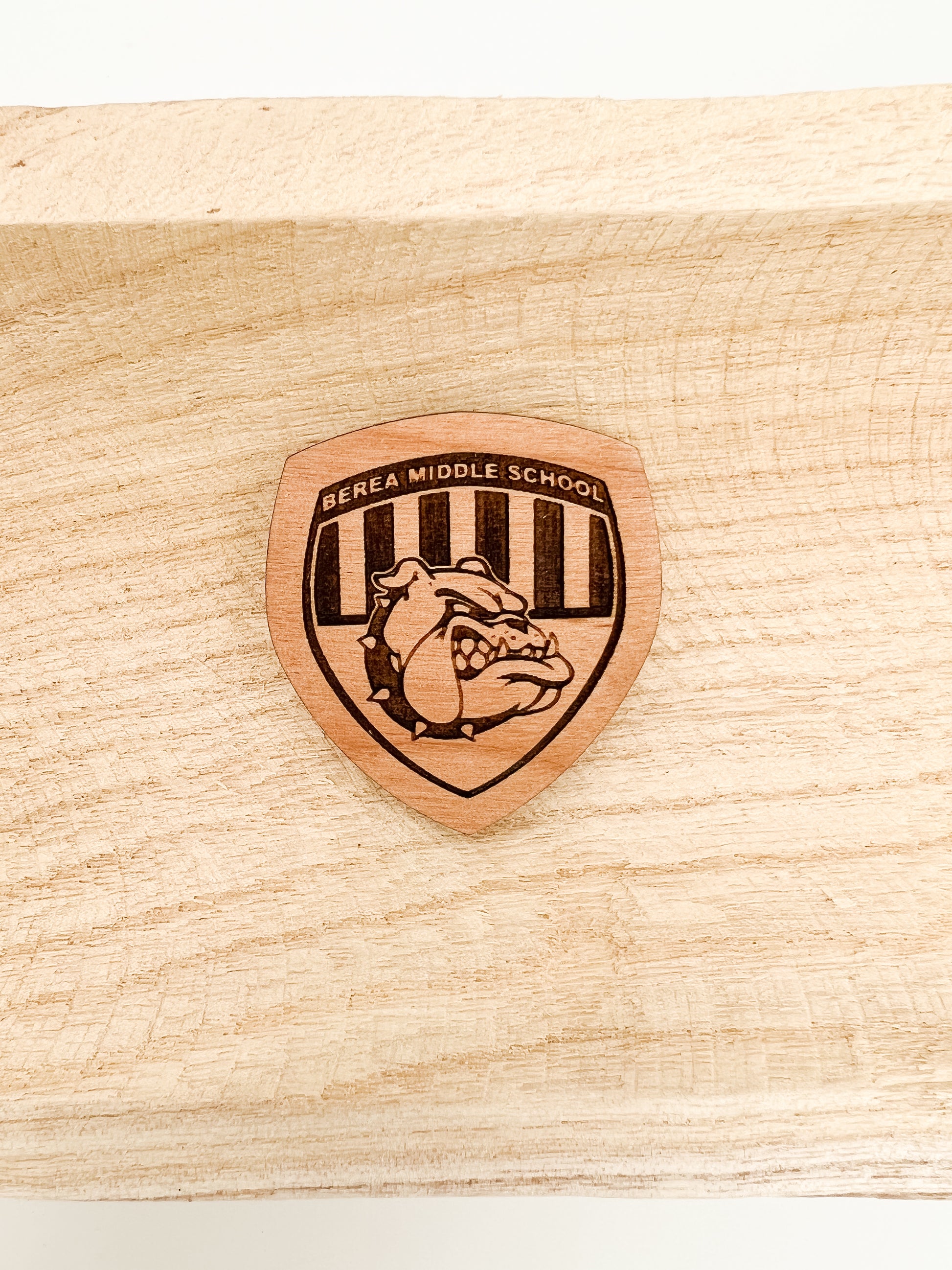 Show your school pride with our Berea Middle Magnet, crafted from solid wood and featuring the school's crest. Display your spirit with this stylish and practical addition to your home or office. Measurements approx. 2.25Hx2W