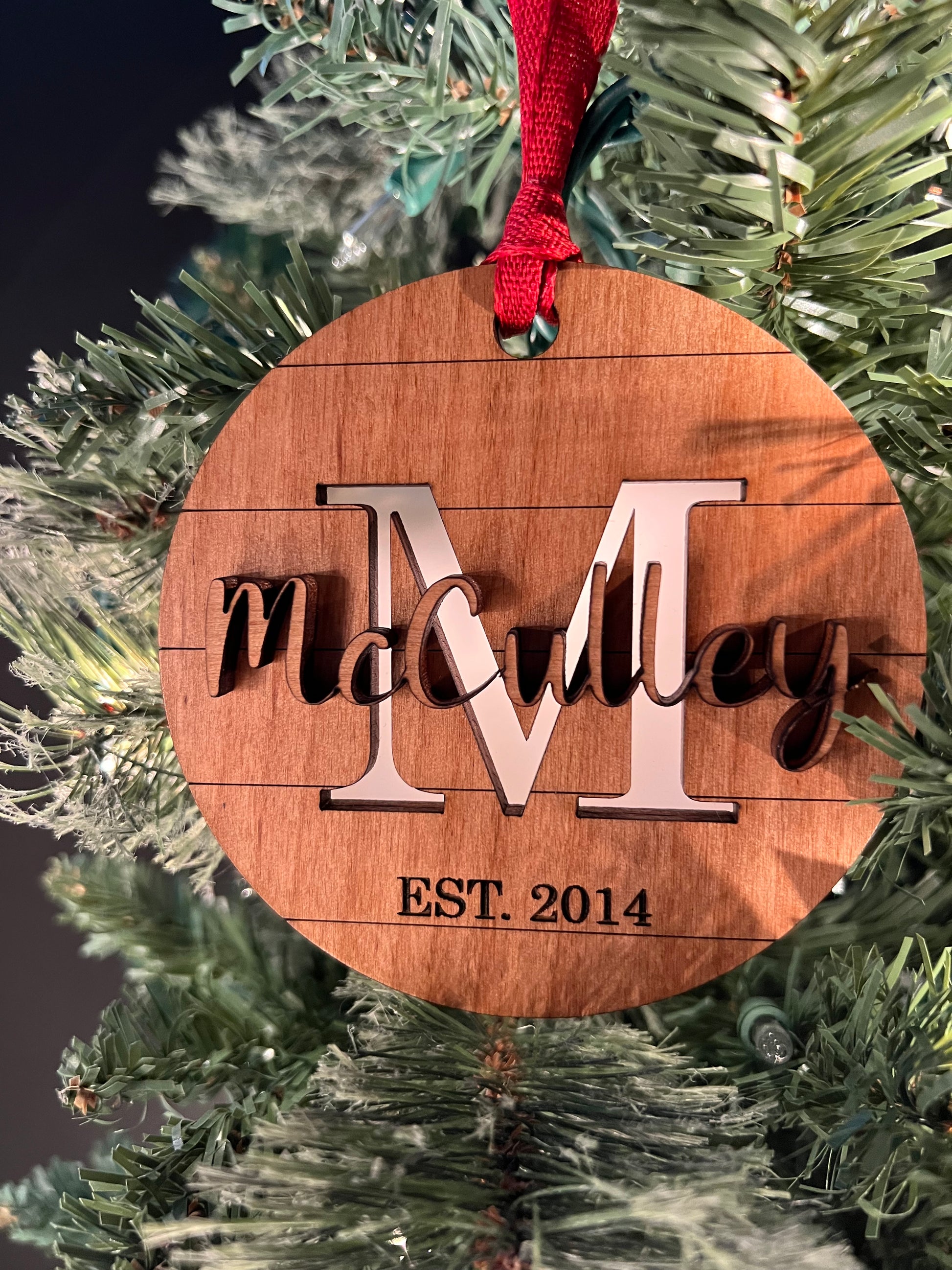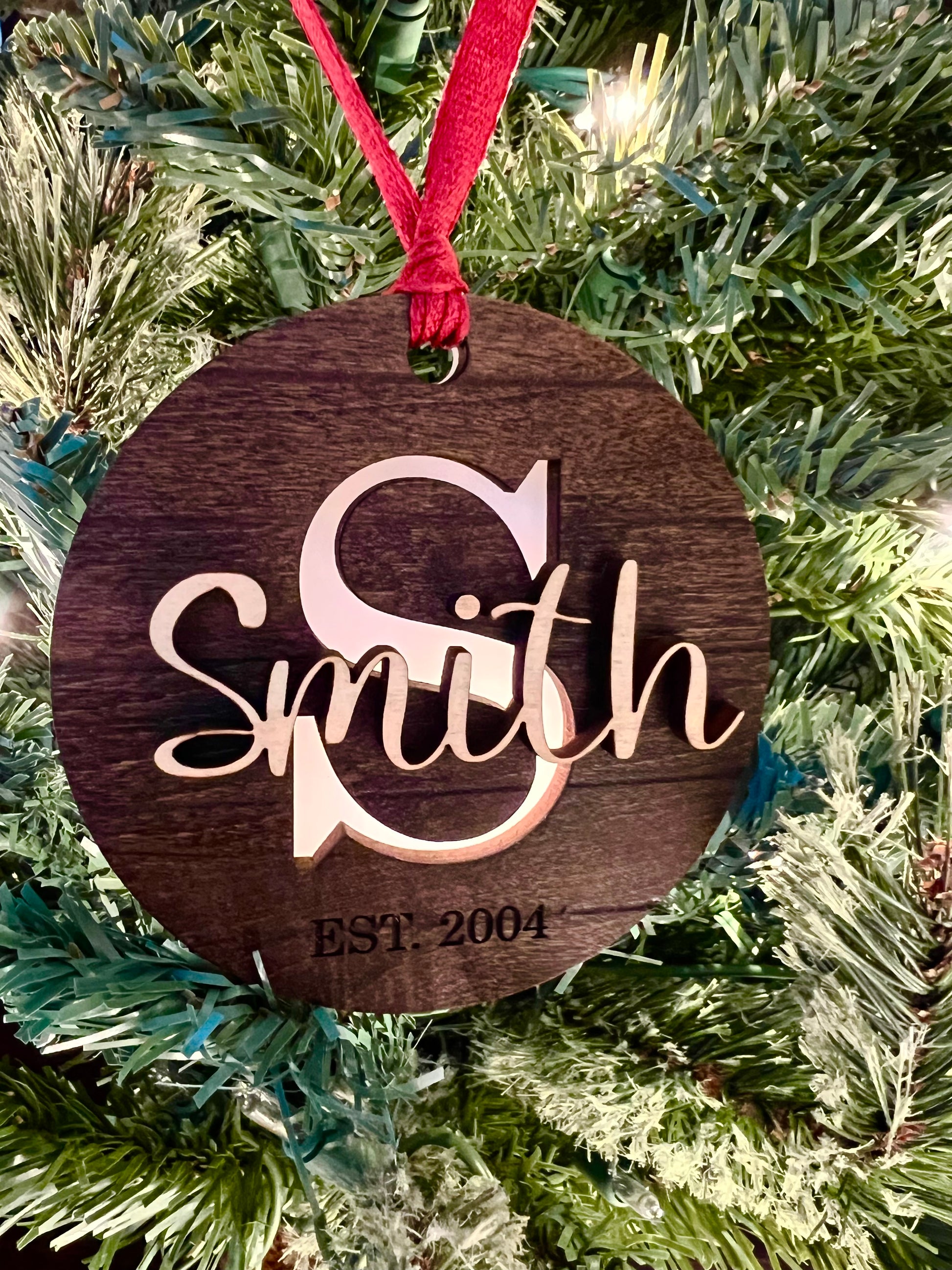 Crafted with a beautiful combination of wood and acrylic to add an extra twinkle to your tree. This custom-made ornament is the perfect way to commemorate the start of a family and can be treasured for years to come! 4in diameter.