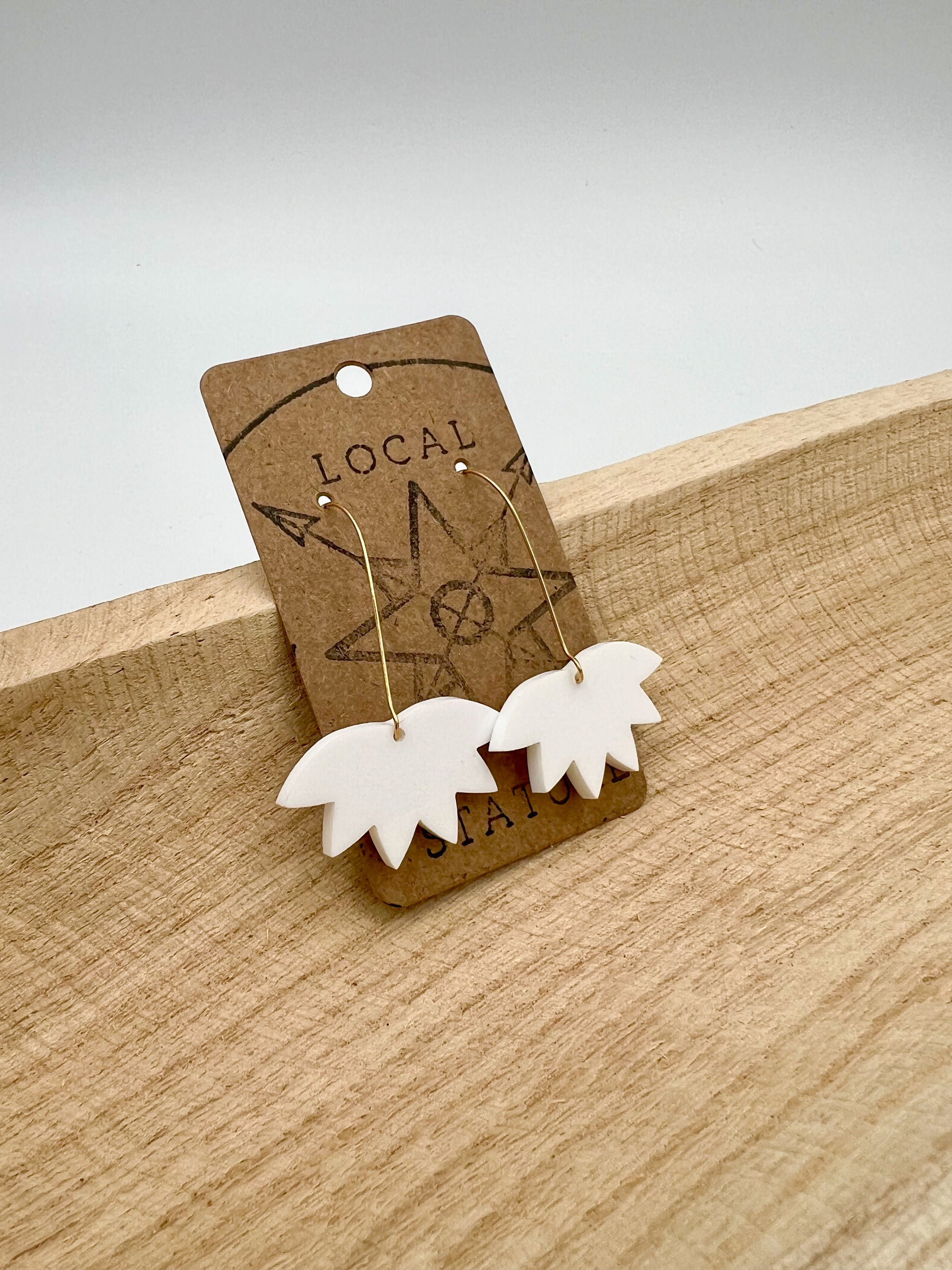 Elevate your style with our acrylic White Lotus earrings! These earrings will make you stand out from the crowd! 1.5in wide